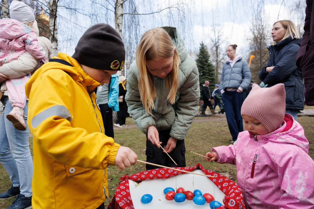 Фестиваль вновь показал, как традиции и преемственность поколений объединяют людей. На площадках были представлены традиционные пасхальные игры и выступления фольклорных коллективов, которые вызвали живой отклик и искренний интерес у гостей. По доброй традиции в открытии приняли участие команды юных художников московских школ искусств, которые расписывали арт-объекты – двухметровые модели пасхальных яиц. В 2026 году участники творческого конкурса создавали свои произведения на тему «Единство семьи – красота Божьего мира».
